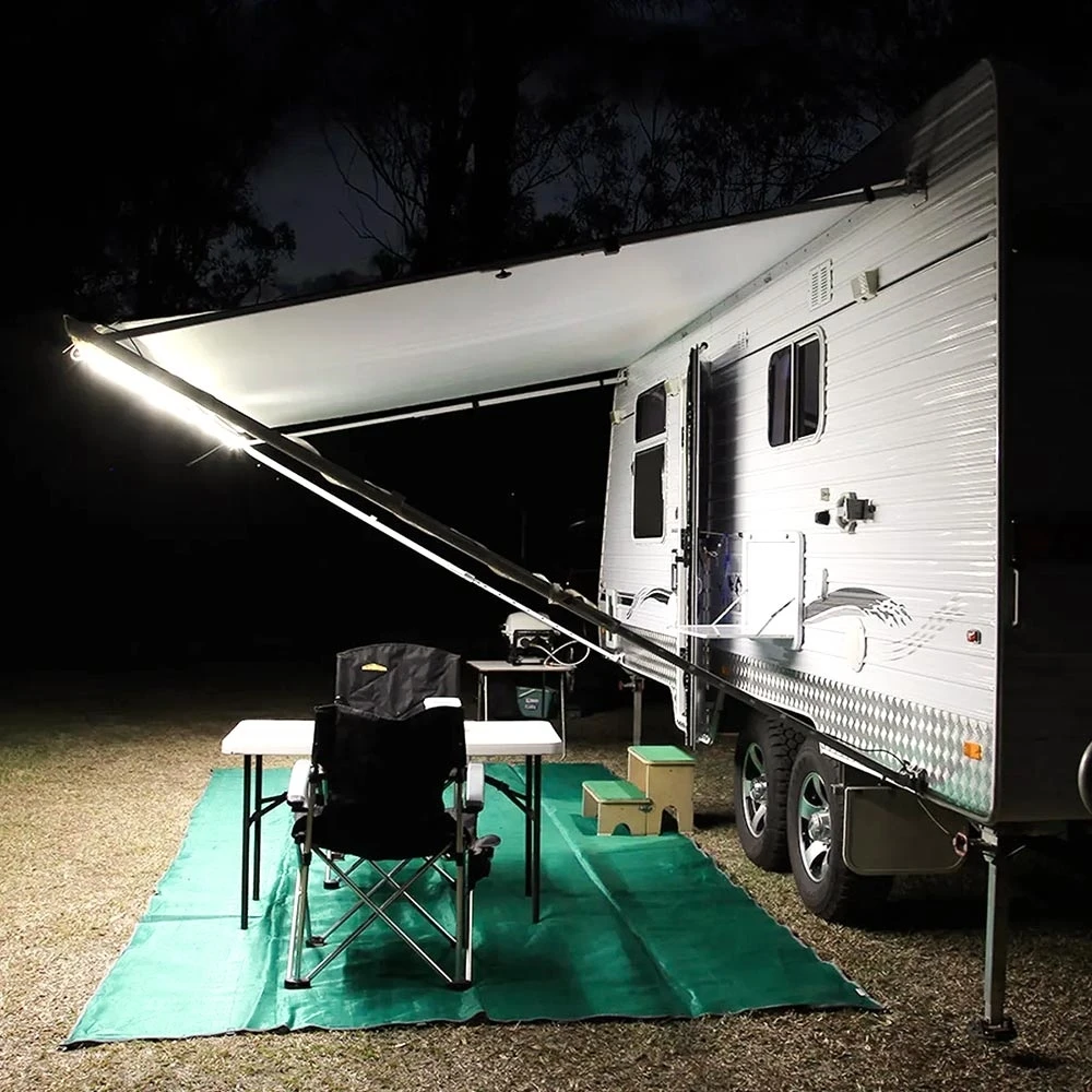 Perfect to use on curved surfaces, this flexible lighting tape is completely waterproof with an IP68 rating. Setting up this lighting is easy, as the back of the LED strip has 3M adhesive tape so you can run these lights along your caravan, boat, 4WD, or tent with ease. The strips can be cut every 50mm, and they have quick connector cables at both ends – so there’s no waste as the offcut also becomes a light.