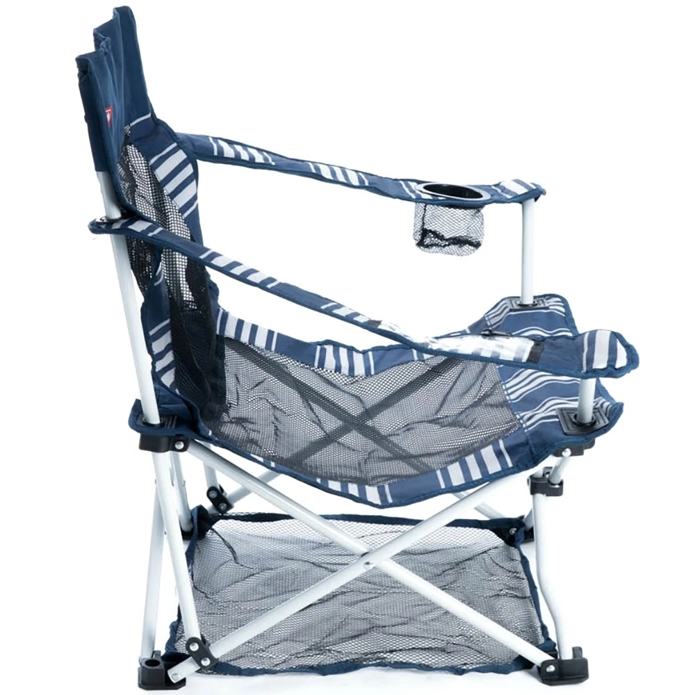 Designed to be used on sand, this chair has a clever four-point attached sand guard to stop you from sinking into the ground when you’re seated. It also has a sturdy powder-coated steel frame and features a durable 600D seat with mesh to keep you cool and let the sand fall through. You can keep a drink close by to stay hydrated in the cup holder and pack it up into the included carry bag for simple storage and transport in the back of your car.