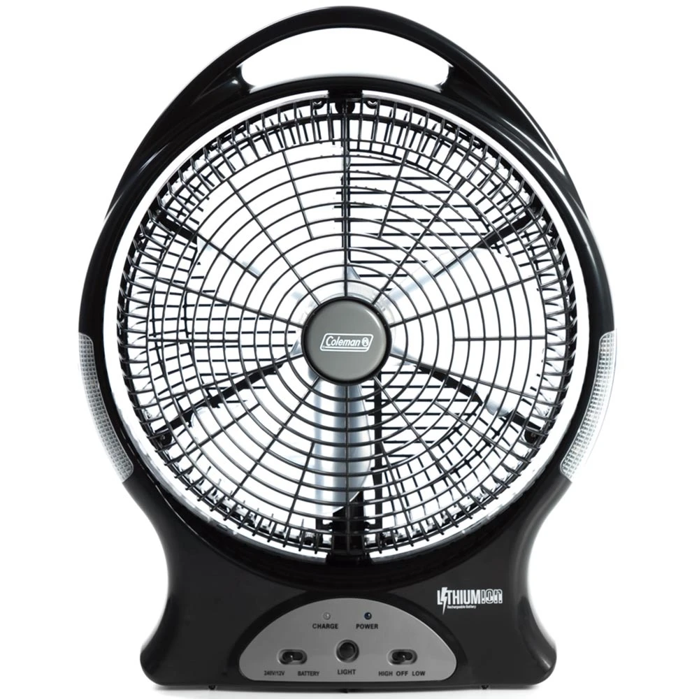 Bring back airflow to your outdoor shelter when the weather heats up with the 12” Lithium Ion Fan from Coleman.