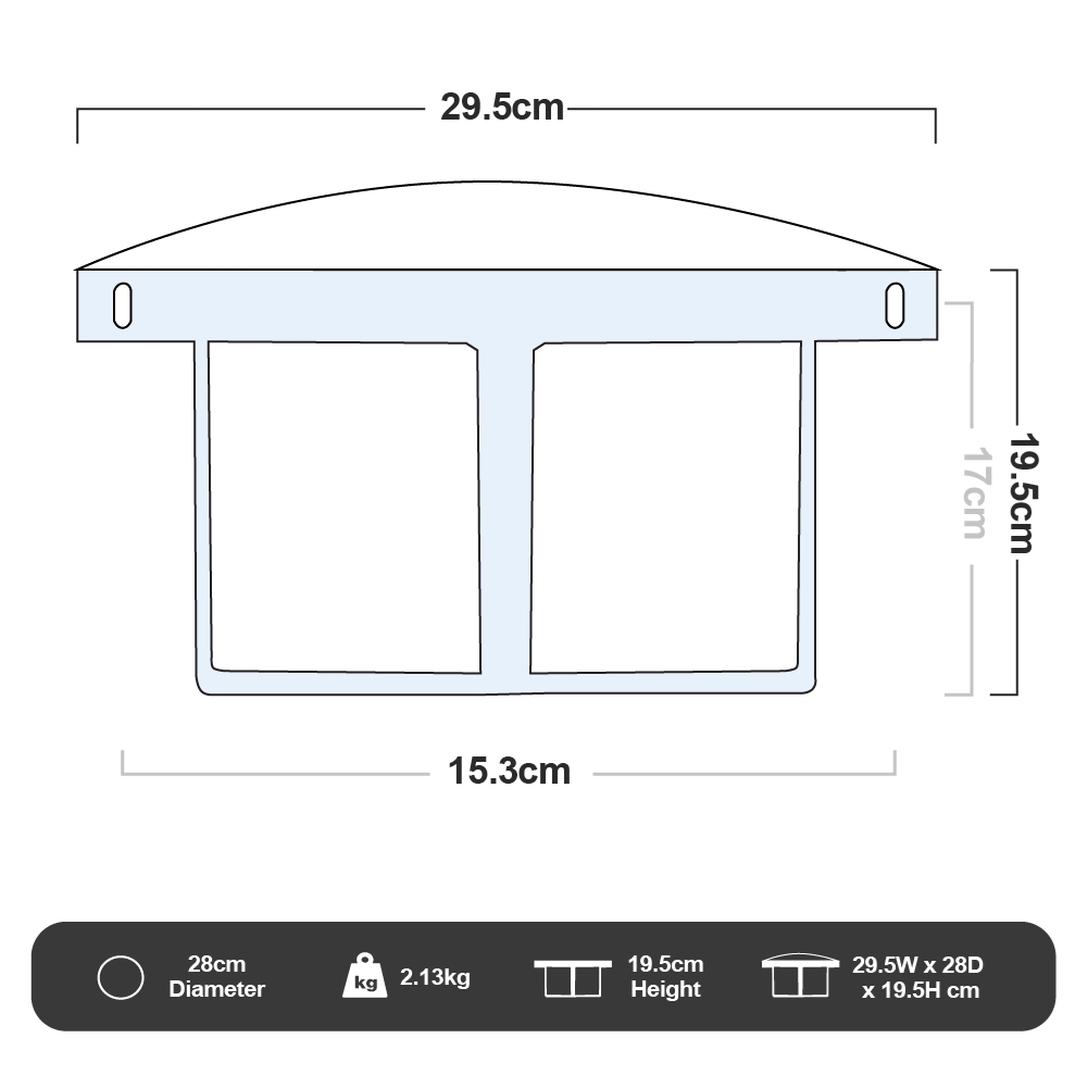 - Attachment points: 17cm vertical from base | 15.3cm horizontal between centres