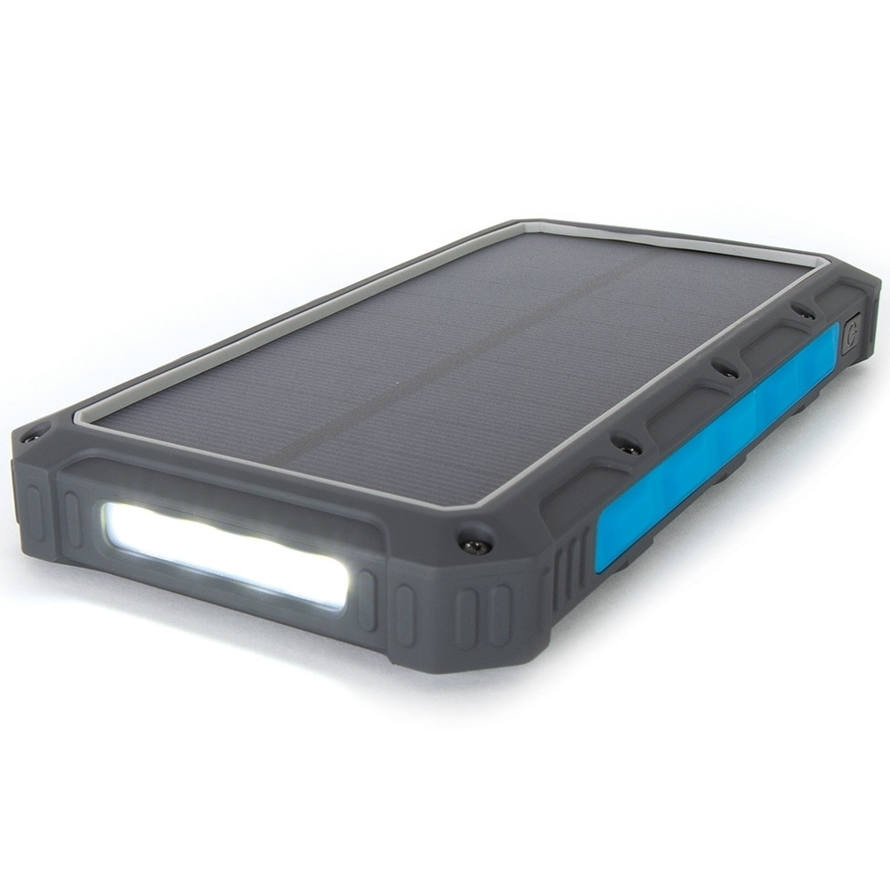 This power bank stylishly integrates a solar panel and allows effortless wireless phone charging. It takes 6 – 8.5 hours for the inbuilt lithium battery to reach full charge with all components safely housed within an IPX65 waterproof rated casing. There are 2 x USB output 2A/1A, 1 x 3A type C USB input/output, and a 3 function LED light, so you’ll know where things are at with the charge. There is also a micro USB DC 5V 2A cable included for when you need to power up on a cloudy day, plus a torch that’ll give you up to 60 hours of run time if you need to see your way after dark.