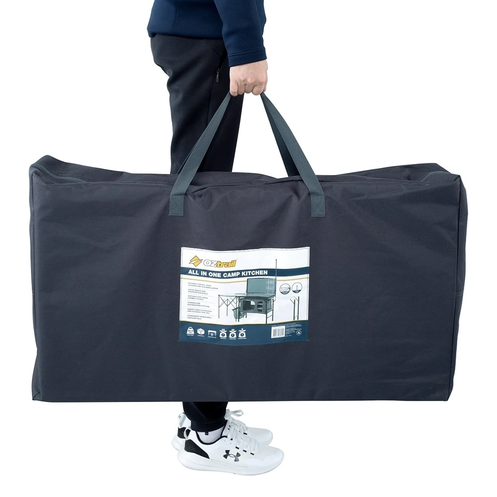 - The ultimate country eatery under the awning, the OZtrail All In One Camp Kitchen is your kitchen king for every outback meal break.