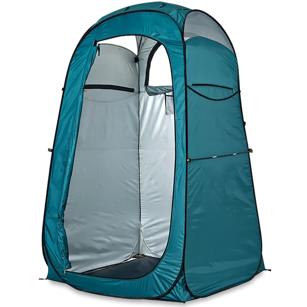 The removable Polyethylene floor with mesh drainage panels allows water to escape, and the inner walls are silver coated for extra privacy.