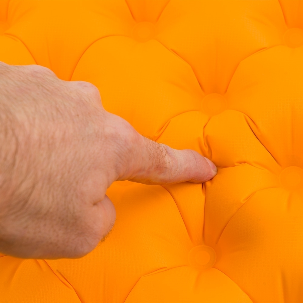 This lightweight sleeping mat is dot weld constructed to create air-filled cells that function in a similar manner to pocket spring mattresses. Confidently do away with a pump and inflate the mat with your breath, the durable rip-stop fabric is extrusion TPU laminated and has an antimicrobial treatment to resist the growth of mould.