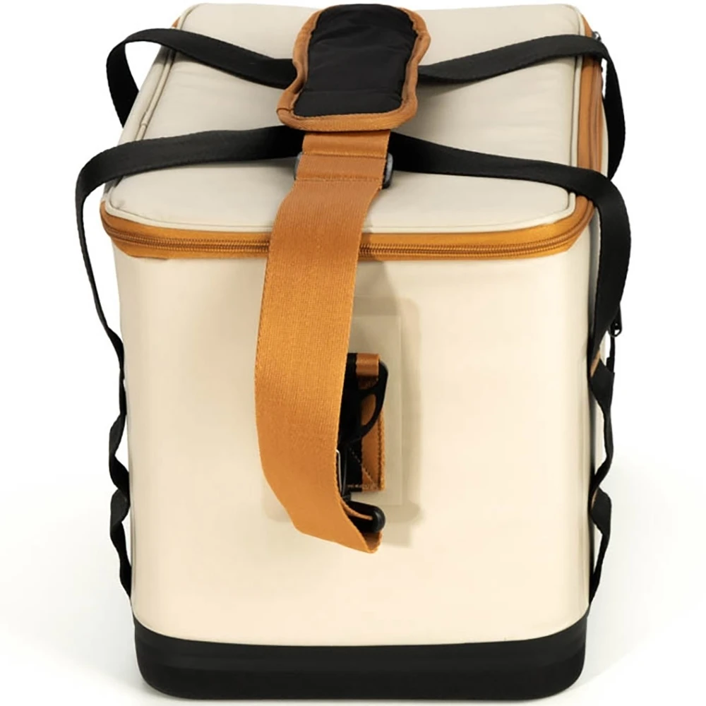 This cooler is made from 500D polyester with has a matte TPU coating, with a lining constructed from 500D polyester and an EVA moulded base that works together to keep the contents cooler for longer. It features strong welded leak-resistant seams for protection, has an attached metal bottle opener for ease of use as well as a front zippered pocket for storing accessories you might need.