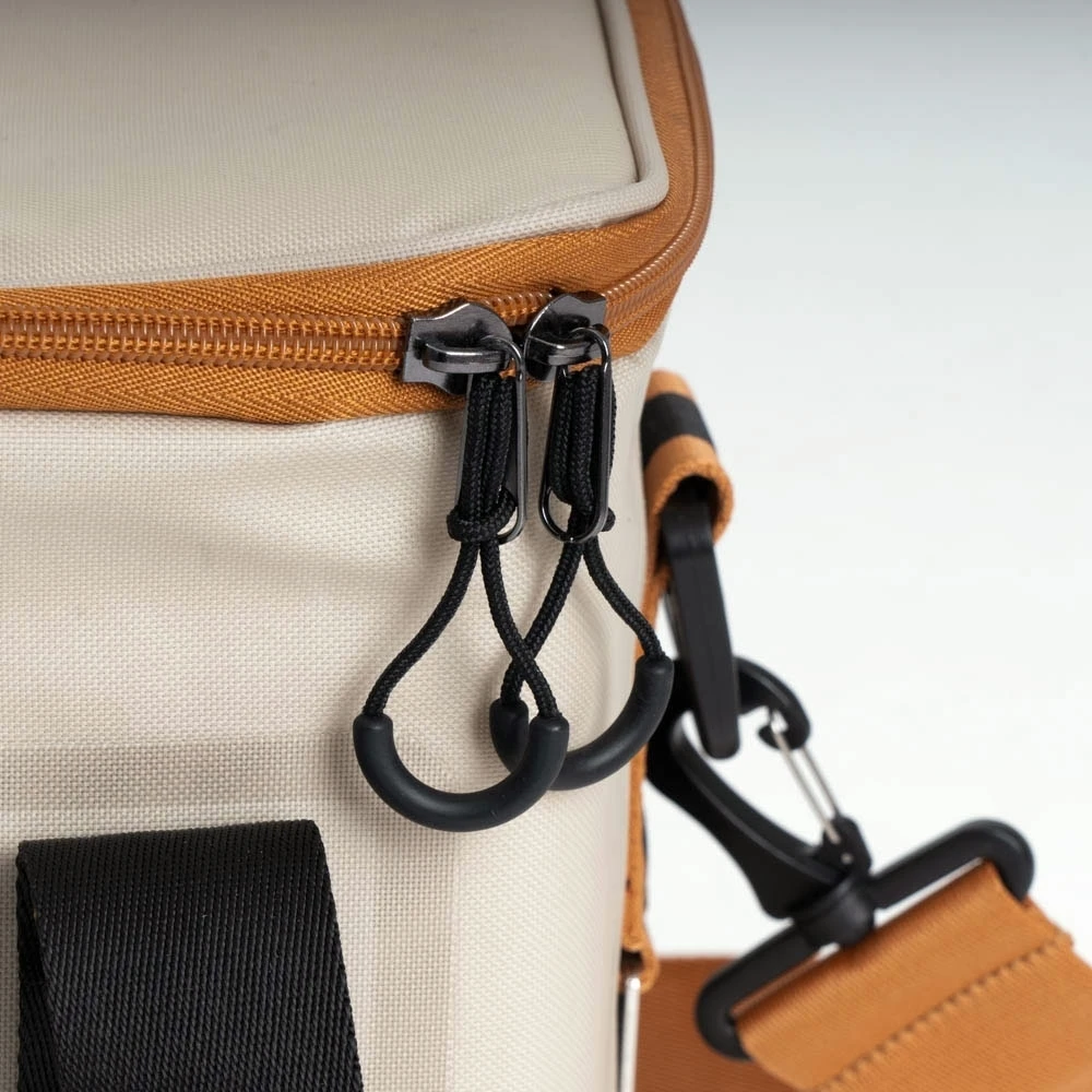 - Zippered accessory pocket and bottle opener